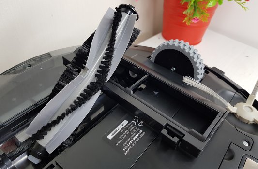 Nous essuyons les capteurs avec un chiffon, et brossons le fond avec des brosses auxiliaires, proposées par le constructeur dans la configuration. Il faut environ 300 minutes pour charger la batterie à 100%. Il est recommandé de nettoyer la brosse centrale après chaque nettoyage, elle rassemble généralement beaucoup de poils.