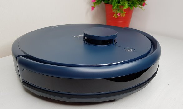 En haut, il y a un bouton d'arrêt / arrêt / démarrage pour les modes intelligents, un bouton d'activation Wi-Fi et un indicateur qui affiche l'état de la connexion. Des capteurs (10 paires) sont placés autour du périmètre du pare-chocs, conçus pour la détection rapide des obstacles. Le plus grand élément est un module télémètre laser à 360 degrés. Cela garantit un positionnement précis du robot aspirateur dans l'espace, vous permet d'obtenir des données fiables sur les dimensions de la pièce et les caractéristiques de son agencement. Mais plus à ce sujet plus tard.