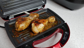 La partie la plus difficile est les cuisses de poulet. Le problème est que les panneaux ne se ferment pas complètement en raison des dimensions du plat. À mon avis, la puissance ne suffit pas pour de tels plats. J'ai dû attendre environ 30 minutes jusqu'à ce que la cuisson soit terminée. Cependant, les jambes sont cuites uniformément, et c'est vraiment simple. Aucun effort n'est requis de la part de l'utilisateur.