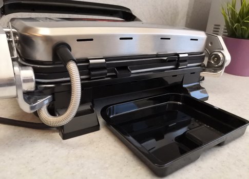 À l'arrière se trouve un récipient amovible conçu pour collecter les graisses.Il est retiré et installé sans trop d'effort.