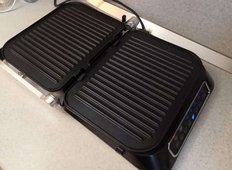 Pour commencer, cette unité est équipée de panneaux amovibles dotés d'éléments chauffants intégrés. De plus, la particularité du gril est qu'il peut déterminer automatiquement l'épaisseur de la viande et sélectionner la température optimale pour le chauffage. Voyons si cela vaut la peine de faire confiance au logiciel de processus ou s'il s'agit d'un stratagème du fabricant?