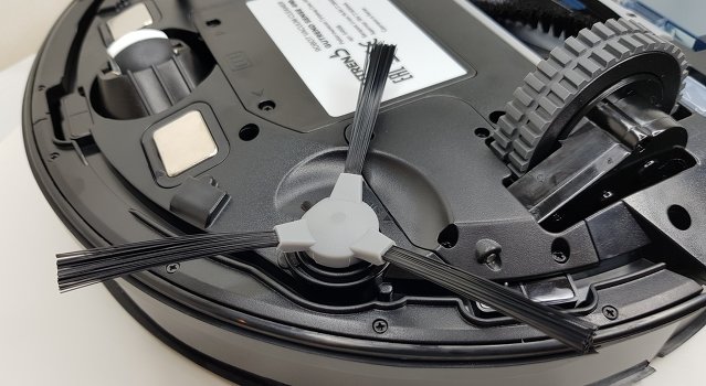 Before starting work, you need to install replaceable side brushes. With their help, it is possible to direct small debris to the central brush, as a result of which the efficiency of dry cleaning increases significantly.
