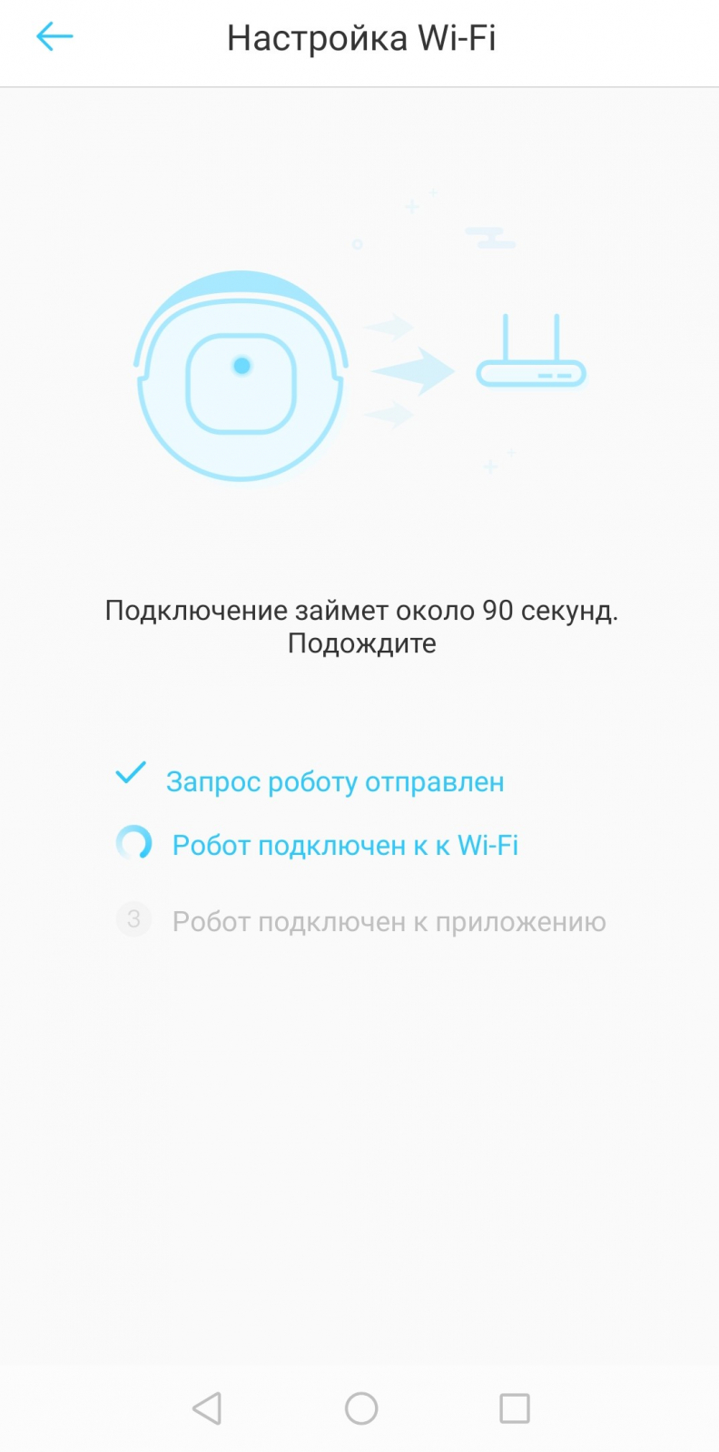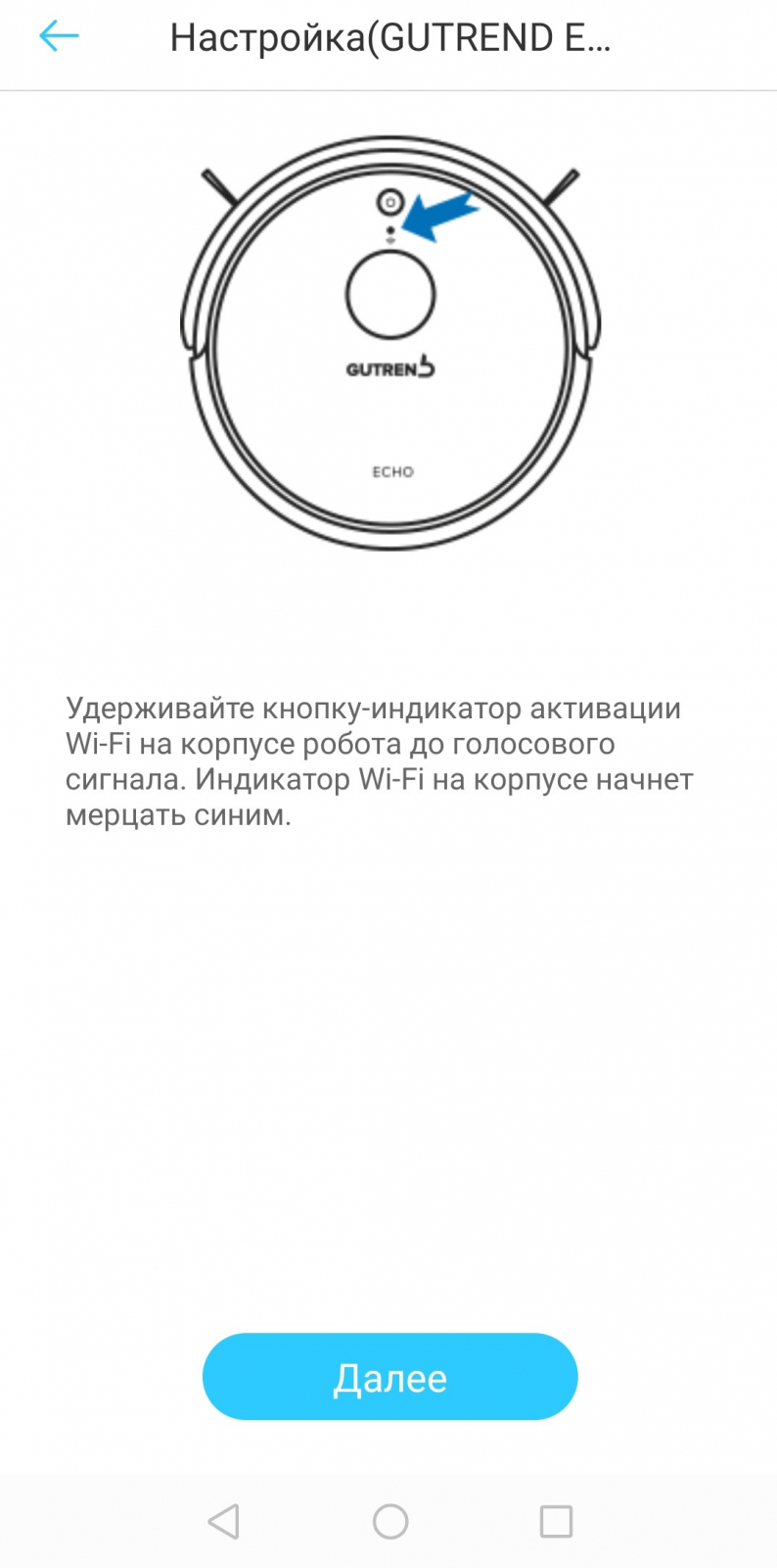 To control the robot vacuum cleaner using a smartphone, you need to download the application. We are going through registration. In the application, add a new device. Next, turn on Wi-Fi, connect to your home network and follow the instructions of the application, as in the screenshot.
