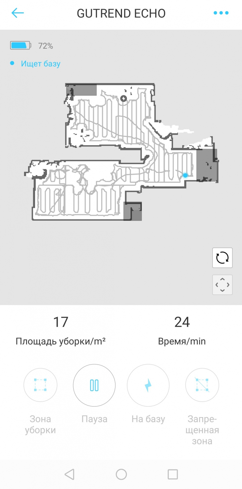 Based on the manufacturer's statement, the battery capacity is enough for 2 hours of continuous operation. This is more than enough for cleaning rooms up to 110 square meters. It took several minutes to prepare the robot vacuum cleaner for work. An obvious plus was the proprietary application, with the setup of which when reviewing the predecessor the last time there were certain difficulties.