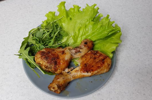 The hardest part is the chicken legs. The problem is that the panels do not completely close due to the dimensions of the dish. In my opinion, power is not enough for such dishes. I had to wait about 30 minutes until the cooking was complete. However, the legs are baked evenly, and it's really simple. No effort is required from the user.