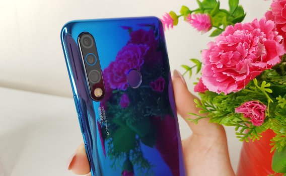 Let's start with the fact that the resolution of the 6.55-inch display is 720 by 1600 pixels with an aspect ratio of 20 by 9.Of course, not the flagship detailing, but it’s worth remembering how much this phone costs and the lack of grain, brightness and a good viewing angle immediately turn into the advantages of the screen. Add to this the presence of anti-glare properties. Regarding color gamut, the indicators are as close as possible to sRGB, but, as it seemed to me, cold shades prevail. However, these are trifles. It is more important that this smartphone has an excellent sensor: it does not freeze, it also did not find any mislations.