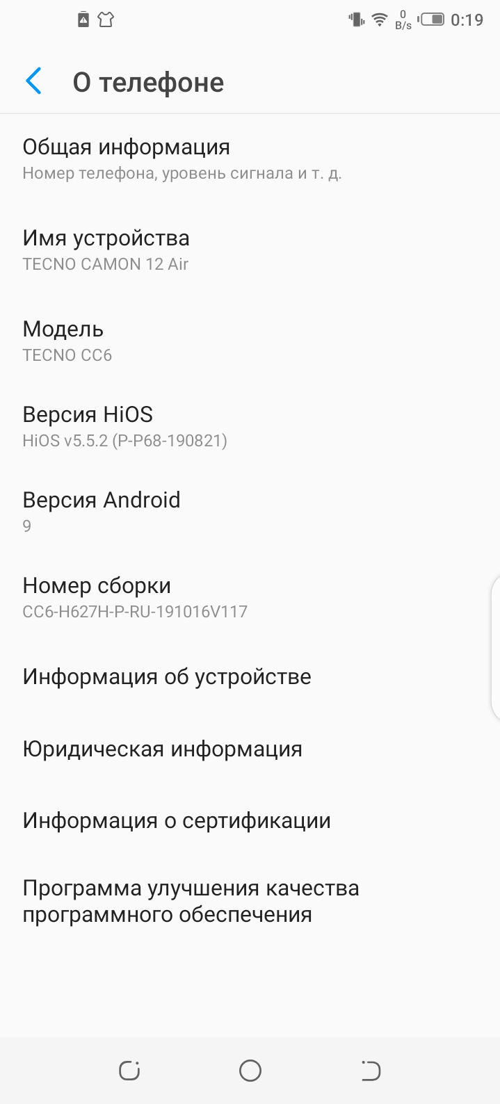 The operating system uses Android 9 with a proprietary HIOS V5.5 shell. After the first launch, you will find the presence of an extensive assortment of third-party applications. Fortunately, they can be removed using standard tools implemented in the CAMON 12 Air smartphone. It will not be possible to get rid of unless from proprietary software and additional application stores. The interface may also seem unusual for users of other Android smartphones. But you can figure it out in minutes: