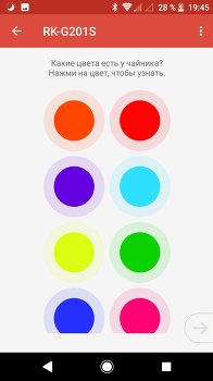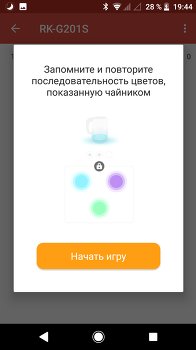 “Train your memory” - in this mode, the kettle changes the backlight color sequentially, and the child remembers them and puts them on the smartphone’s playing field in the same order.