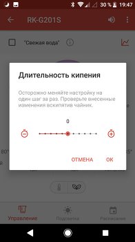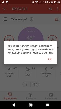 After installing it, various functions will be available, and the first of them “Fresh water", The teapot itself reminds of the need to change the water, as it has stagnated.