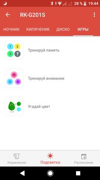 “Train your attention” - a mode in which the kettle is highlighted in different colors. The child remembers and selects the appropriate backlight option on the smartphone. The game contributes to the development of small, the development of color perception and reaction.