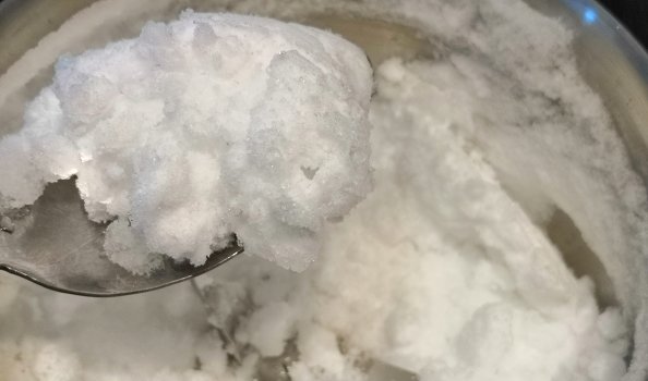 Finally, I wanted to test the chopper for knife sharpness and power. To do this, put about 350 grams of ice in the bowl, and turned on the maximum speed. To complete the task, I remind you, it is necessary to hold the “P” mode. After 20-30 seconds, we got a wonderful “sea snow”.