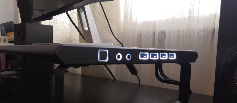I want to say right away that there are a lot of options on the market, but to save space, I liked the model from DeepCool - M-DESK F3. In addition to its main function, it performs the tasks of a hub with 4 USB 3.0 ports (for those who are poorly versed, I’ll explain the speed of the standard Usb is 250 Mbps, and Usb 3.0 is up to 5 Gbps), which is also very important and extremely convenient.