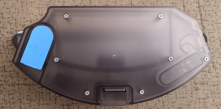 As already mentioned in the review of the complete set of the GUTREND FUSION 150 robot vacuum cleaner for wet cleaning, manufacturers supply a model with a water tank, which strongly resembles a garbage container with external signs. The differences are that the tank is not equipped with filters, it does not open. On top is a rubber stopper, by opening which you can add water.