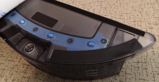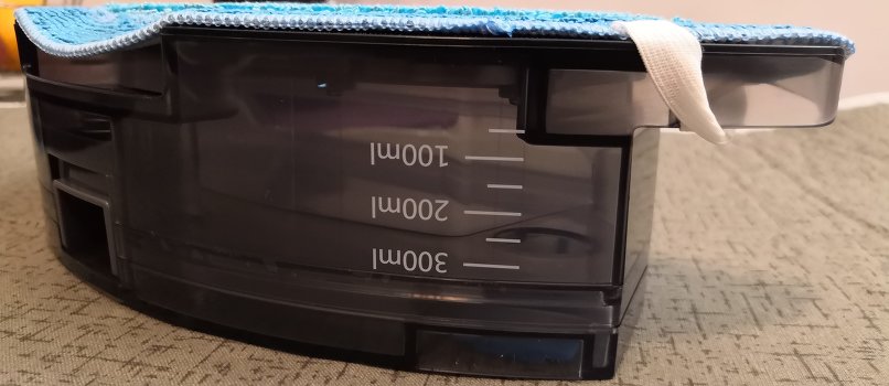 Before activating the wet cleaning mode, I changed the dust bag to a water tank. Further, I decided to test the SMART DRIP 2.0 intelligent water supply system, which, according to the developers, is responsible for calculating the exact dosage. In fact, automatic cleaning is repeated only with mopping the floor with water. To say that this robot vacuum cleaner allows you to achieve the perfect effect, I can not, of course, using the manual wet cleaning to achieve the desired result is easier.